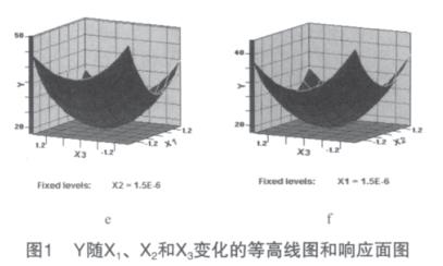 利用響應(yīng)面分析法[1]化枸杞子渣超微粉碎工藝參數(shù)。在單因素預(yù)試驗(yàn)基礎(chǔ)上,用SAS軟件系統(tǒng)進(jìn)行響應(yīng)面分析,設(shè)計(jì)一個(gè)三因素五水平的回歸方程來(lái)擬合因素和指標(biāo)(響應(yīng)值)之間的函數(shù)關(guān)系。選擇球料比(X1)、枸杞子渣漿液濃度(X2)和攪拌器轉(zhuǎn)速(X3)作為因素,以粉碎后的顆粒粒度d50作為響應(yīng)值對(duì)球磨機(jī)濕法超微粉碎工藝進(jìn)行化。